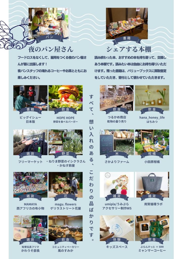 ・夜のパン屋さんやご協力店によるマルシェをお楽しみください。