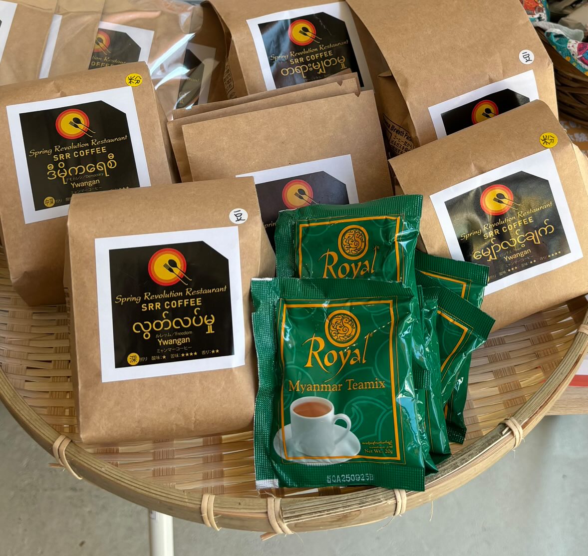 ミャンマー、ユワンガン地方のフェアトレードコーヒーと、伝統的なミルクティー(チャイ)を販売しています。